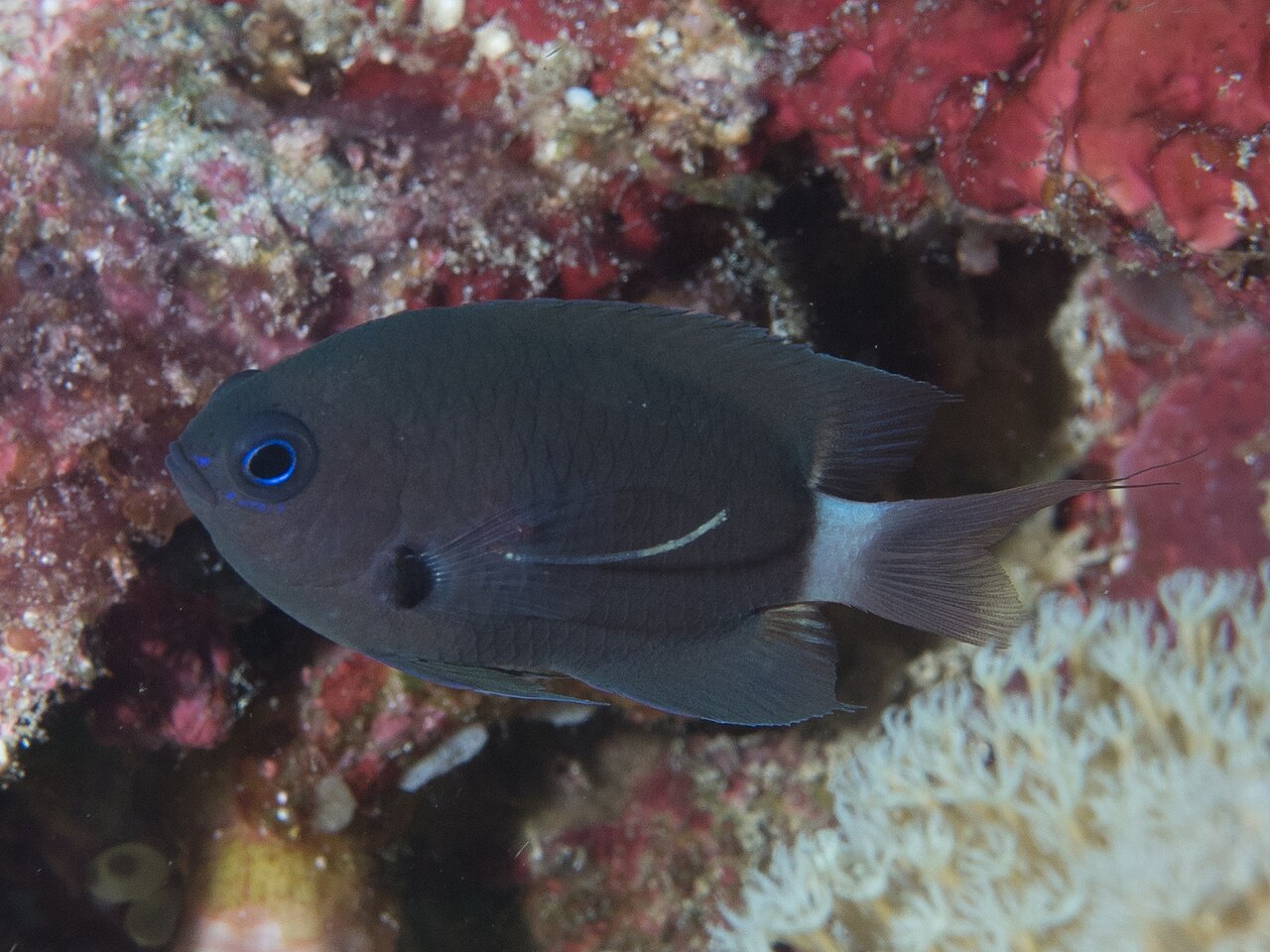 Source: Deep reef chromis (Chromis delta) with parasite (48652156867).jpg