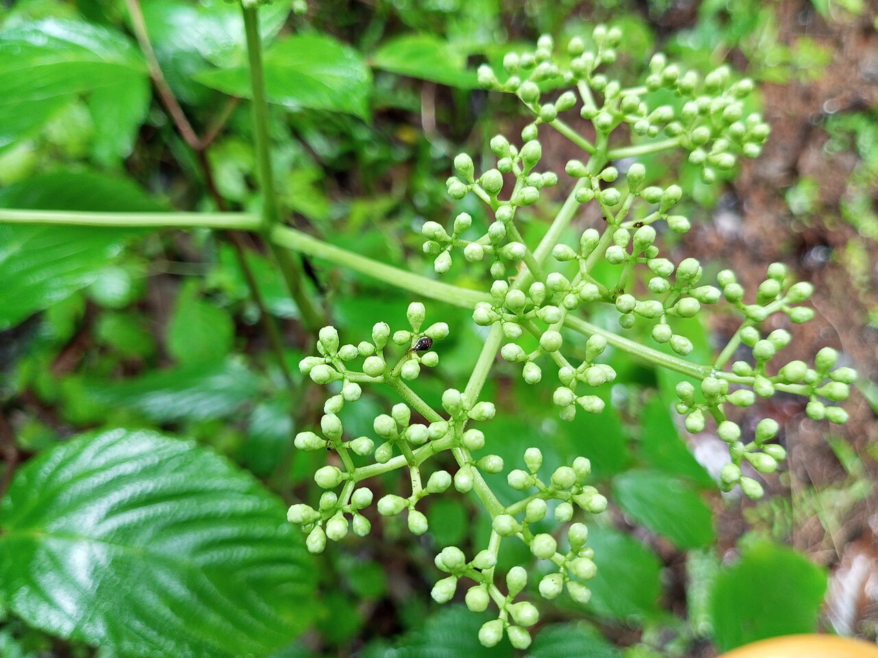 - 花小,通常为黄绿色,聚伞花序
