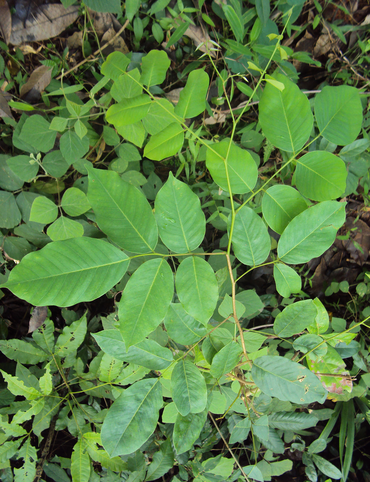 - 其叶子为羽状复叶,小叶片呈卵形或长椭圆形,边缘平滑