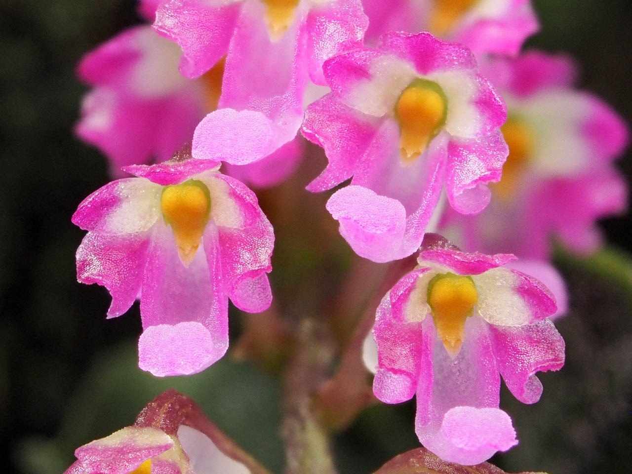 • 花序顶生,花朵较小但色彩鲜艳,花瓣与萼片相似,唇瓣特化成匙状