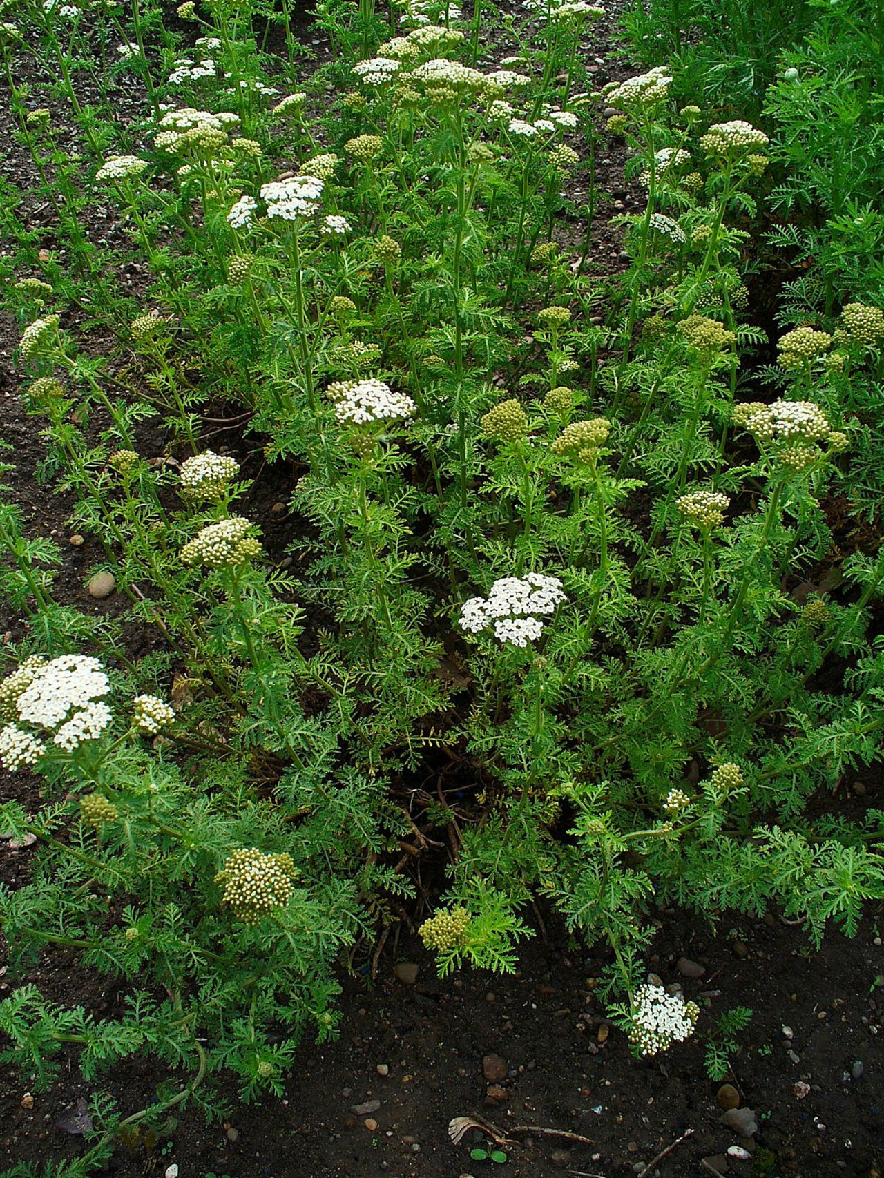 - 头状花序排列成伞房状,花色从白色到粉红色不等,夏季开花