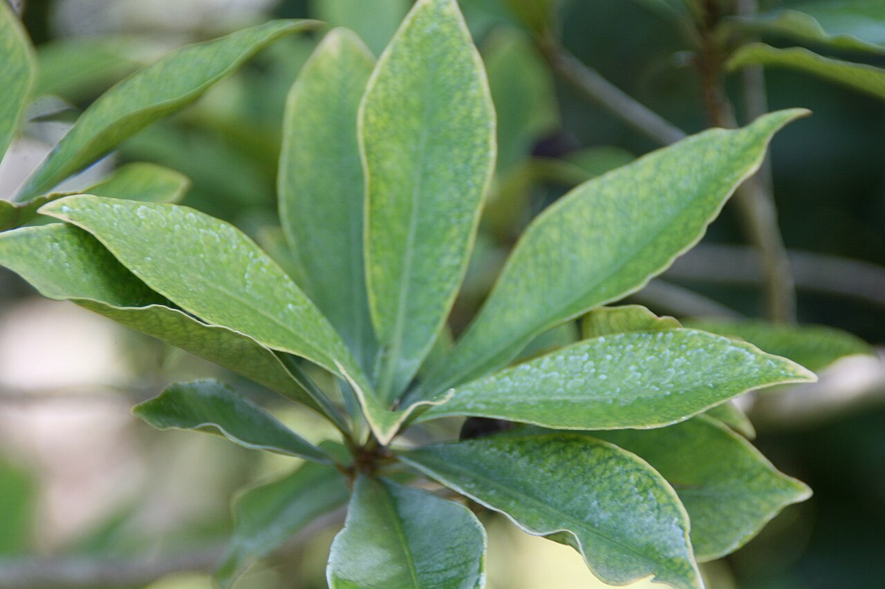 - 互生,叶片厚纸质至革质,卵形至长椭圆形,边缘全缘或略呈波状