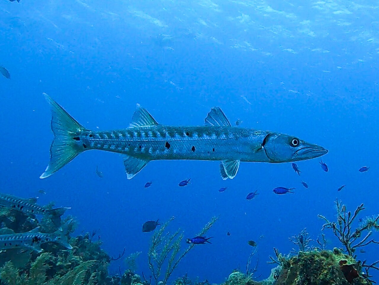 - 背部为深蓝色或蓝绿色,腹部银白色