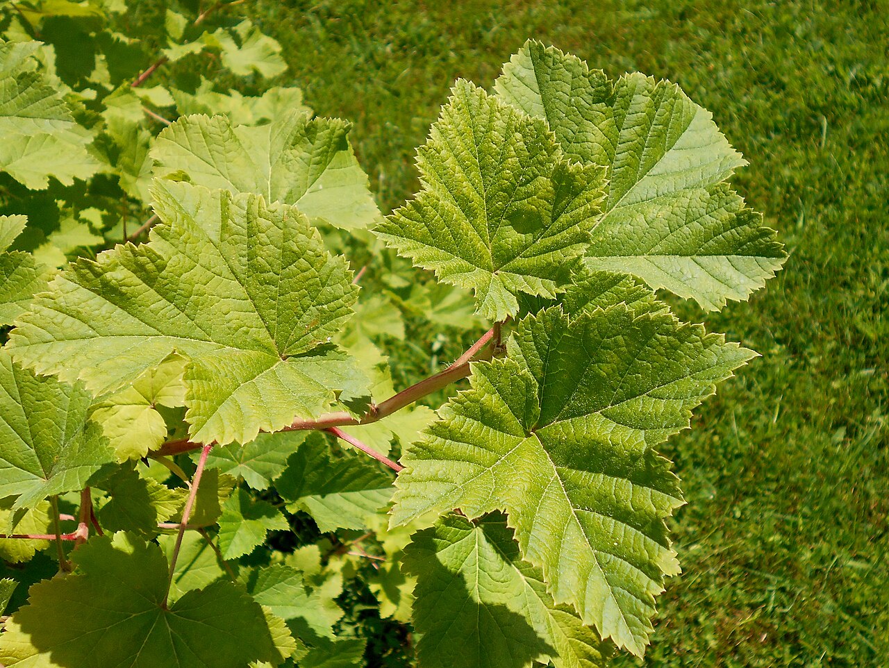 - 单叶互生,形状多变,通常呈掌状分裂,边缘有锯齿