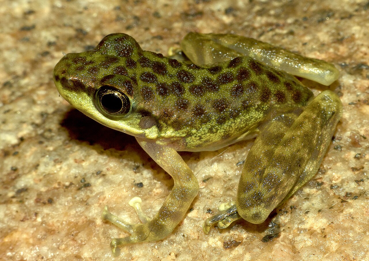 - 眼睛较大,鼓膜明显,位于眼后方,但相对于其他蛙类来说显得较小