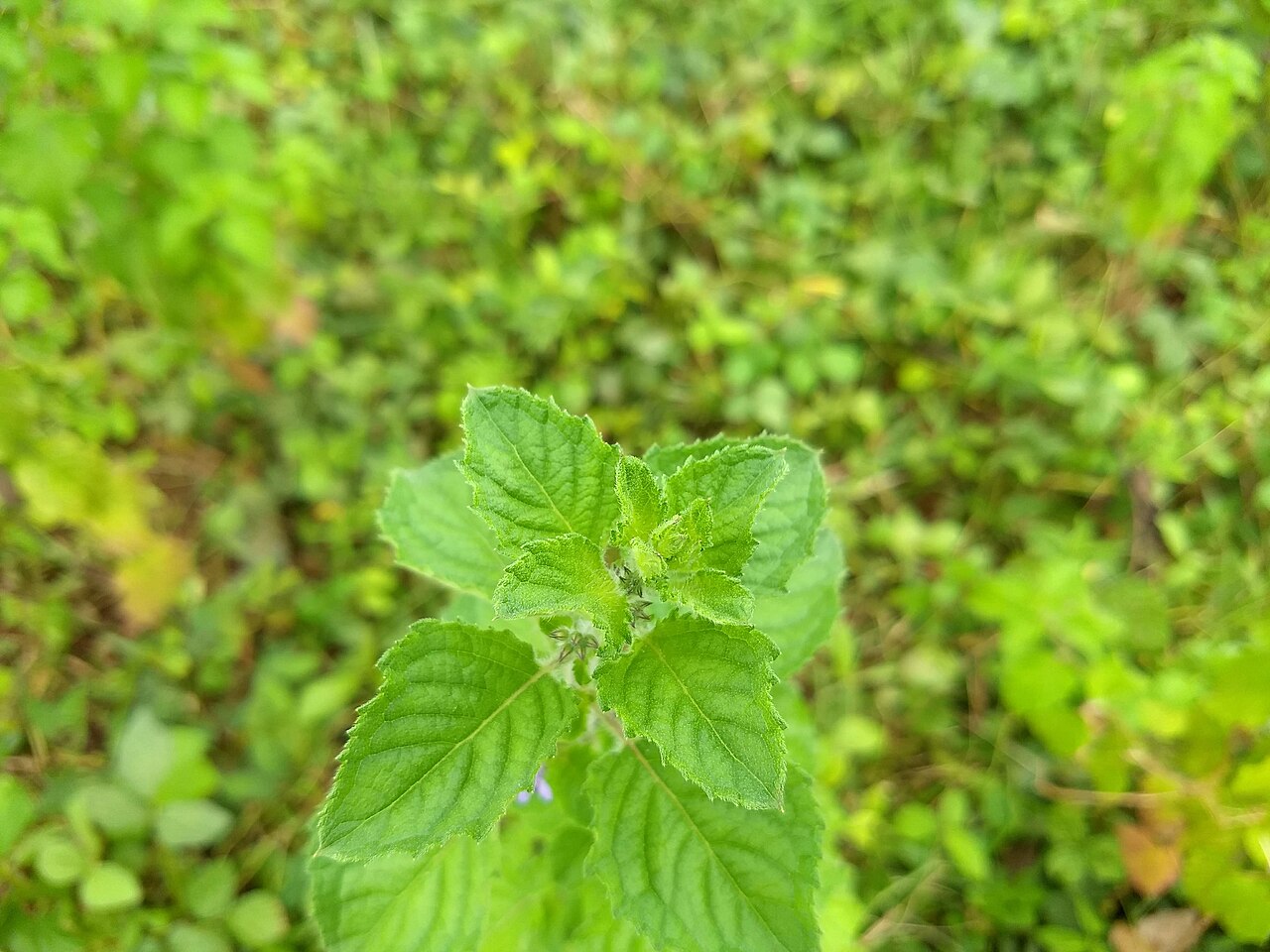 • 对生,卵圆形至长椭圆形,边缘有锯齿,叶面绿色或带有紫色斑点