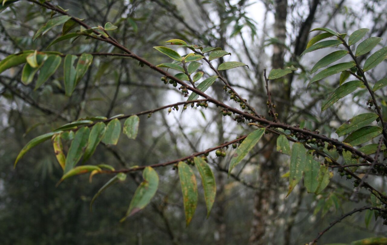 - 单叶互生,革质,长椭圆形至卵状椭圆形,边缘有锯齿