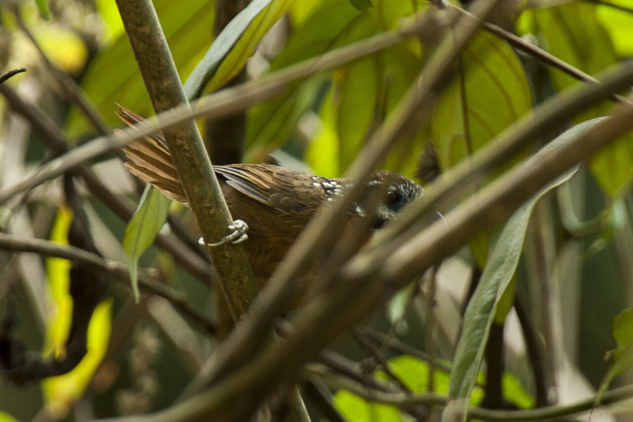 - 斑颈穗鹛善于利用其自然色彩融入周围环境之中,躲避天敌