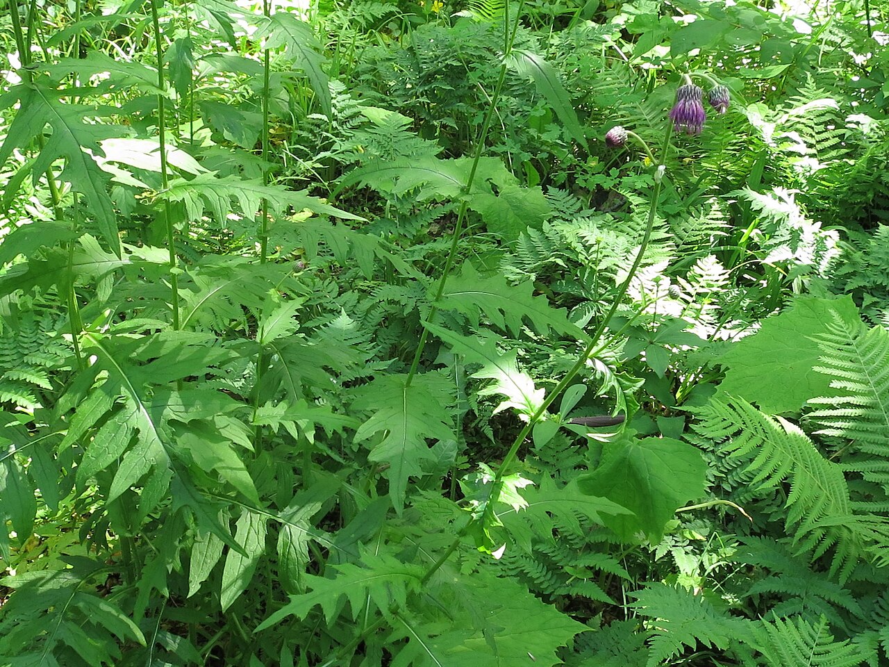 • 大而多裂,边缘带有尖锐的小刺,基生叶片较大,上部叶片逐渐变小