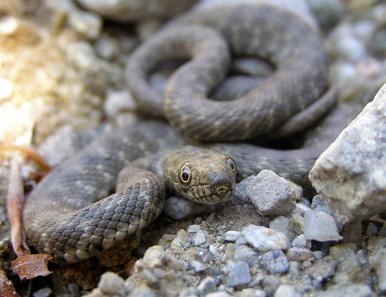 - 头部略呈三角形但并不尖锐,眼睛较大,瞳孔圆形