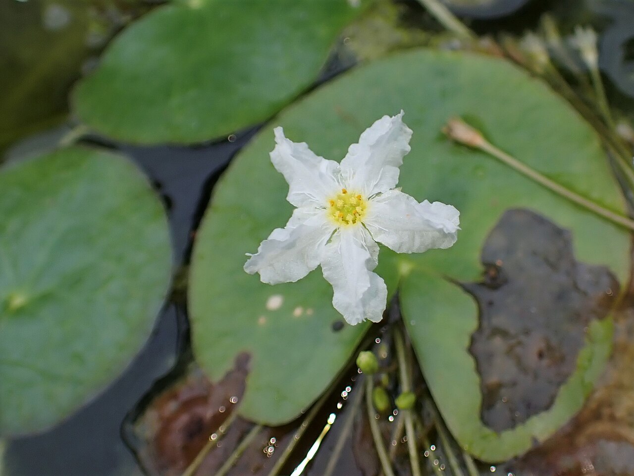 • 圆形至心形,浮于水面之上,叶缘平滑或有轻微锯齿