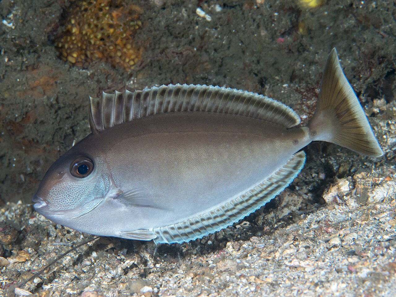 Source: Elongate unicornfish in Night coloration (Naso lopezi) (42955826600).jpg