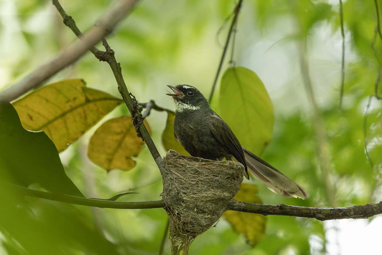 - 白喉扇尾鹟有着悦耳动听的鸣叫声,有时会被误认为是其他种类的小鸟