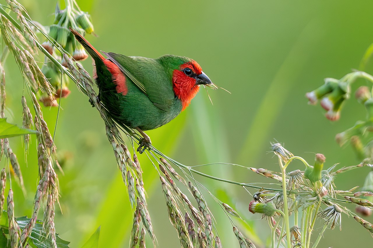 - 红喉鹦雀能够模仿人类说话的声音,是许多鸟类爱好者喜爱的家庭宠物之一