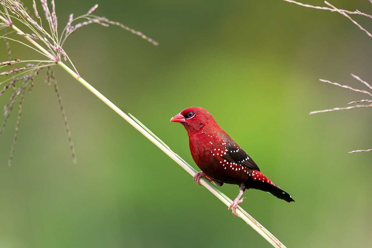 红梅花雀:艳丽夺目