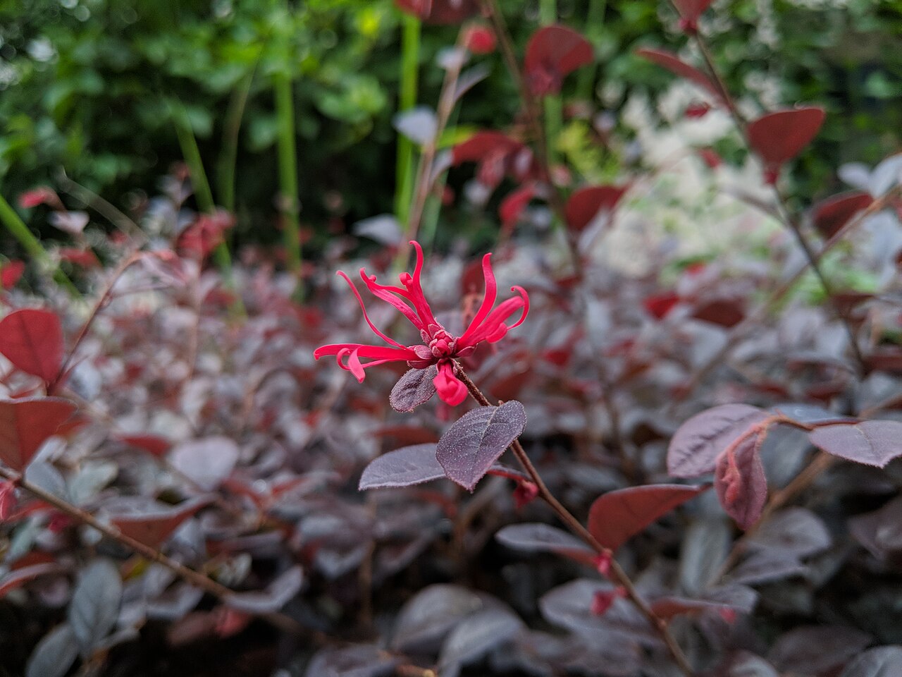 • 随着季节变换,红花檵木的新叶会从鲜艳的红色逐渐变为绿色