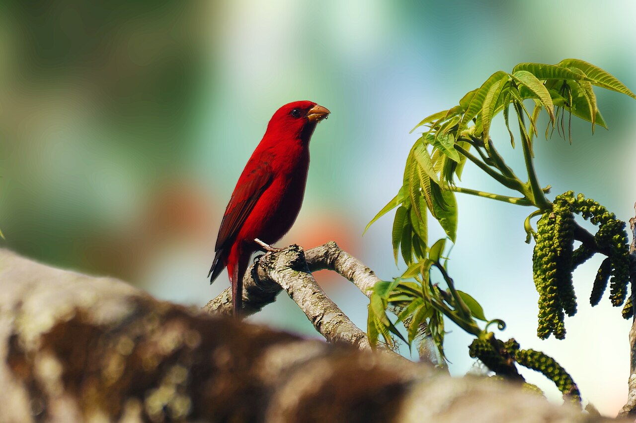 • 雄性血雀之所以呈现出如此鲜艳的颜色,是因为它们能够将从食物中摄取到的类胡萝卜素转化为红色色素