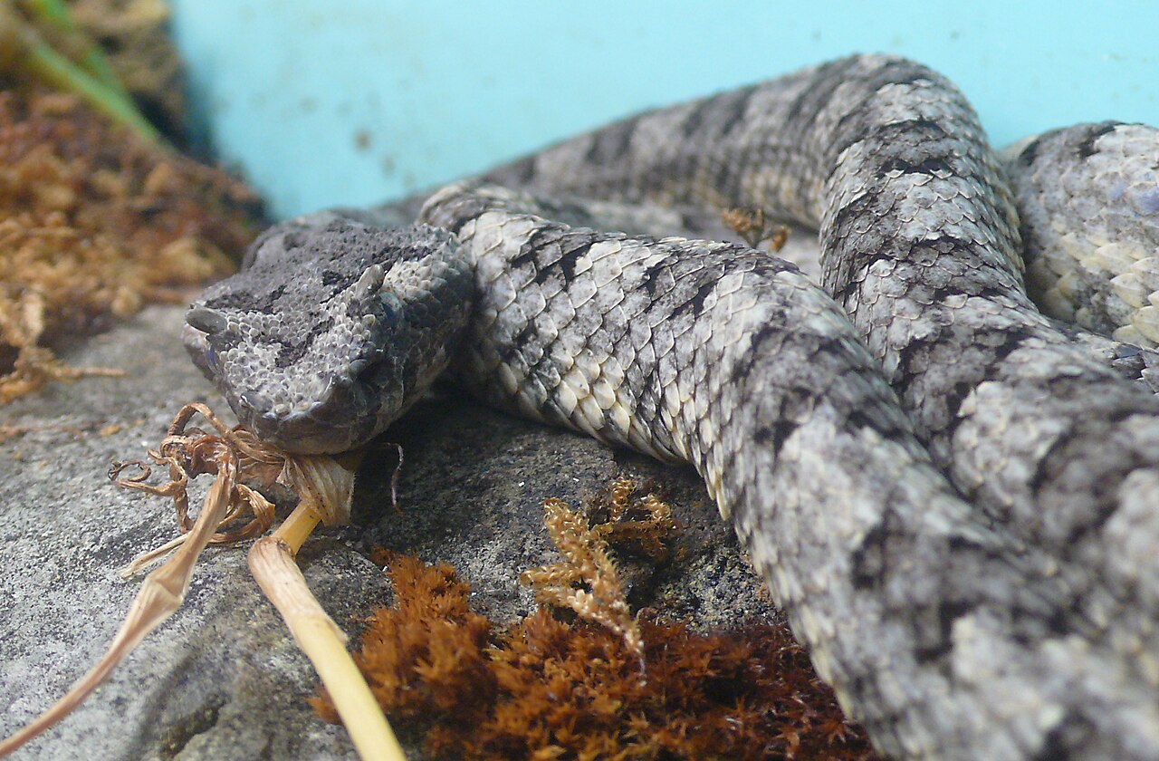 - 角原矛头蝮鼻子上的小角其实是皮肤褶皱形成的结构,并非真正的角