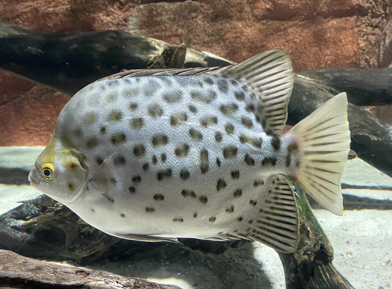 Source: Spotted scat (Scatophagus argus) side view Sydney Zoo 2023-02-05.jpg