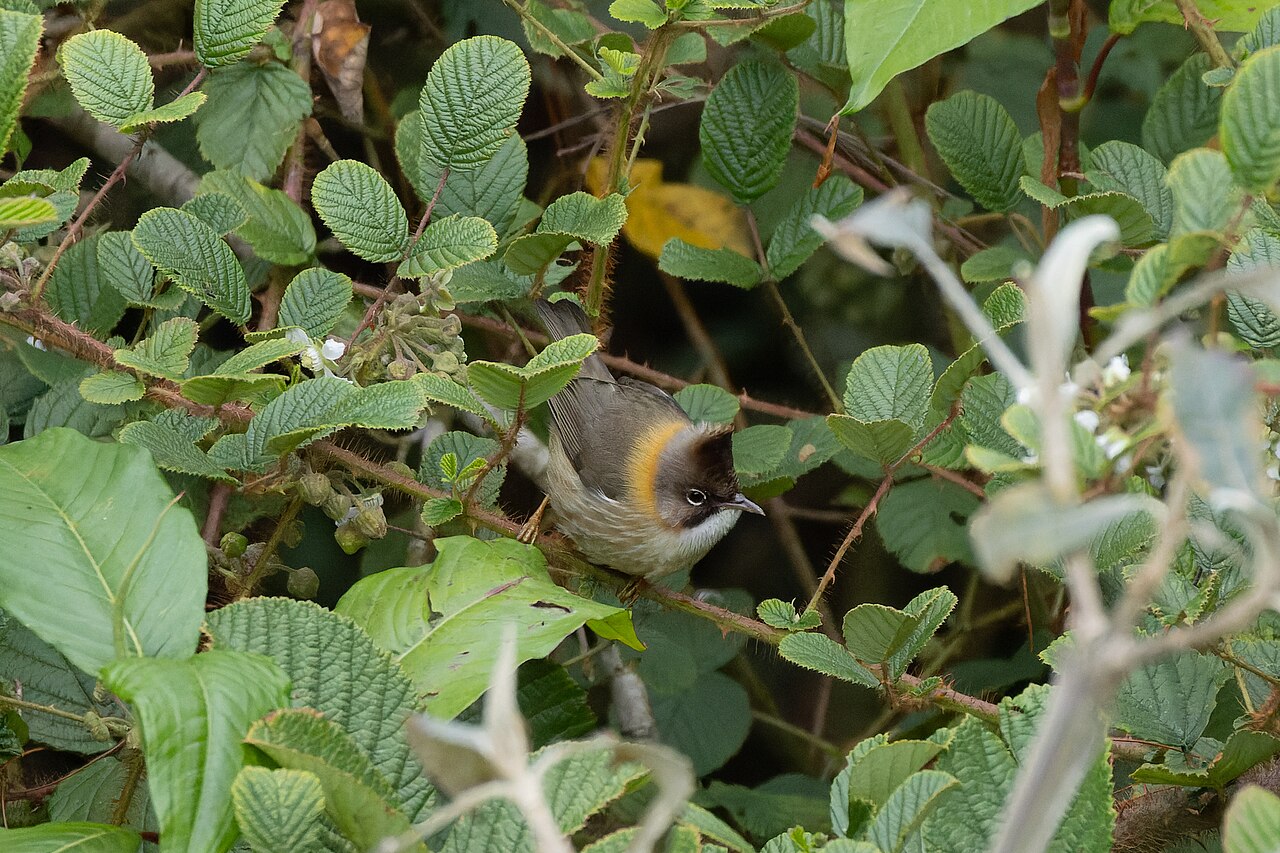 - 黄颈凤鹛非常善于交际,经常与其他种类的小型鸟类混群行动