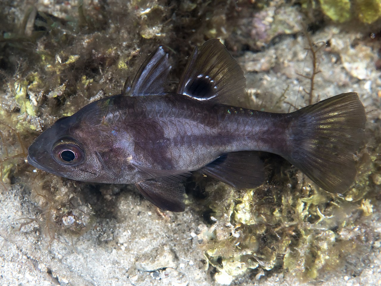Source: Black cardinalfish (Apogonichthyoides melas) (43875107995).jpg