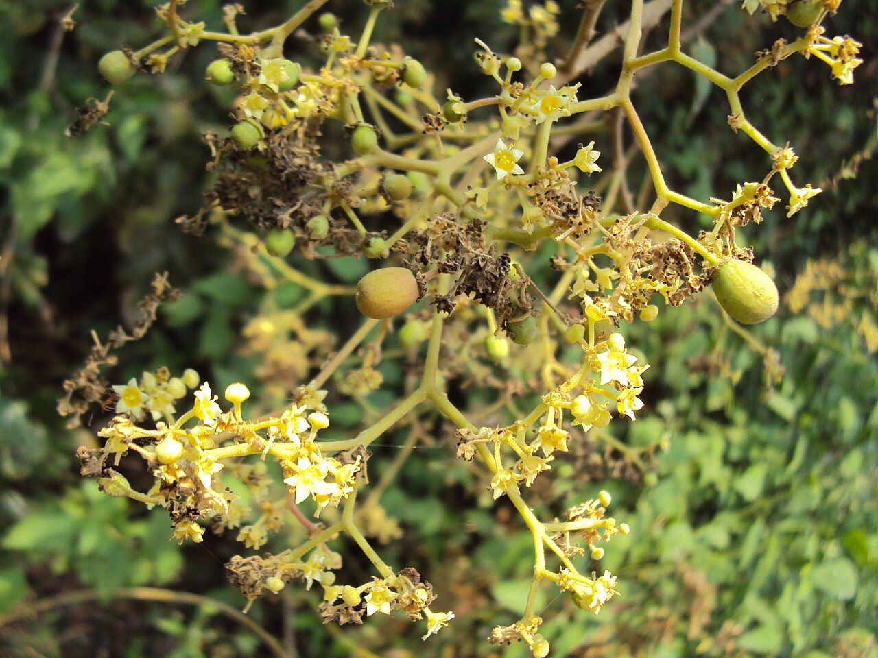• 黄绿色小花,聚伞花序