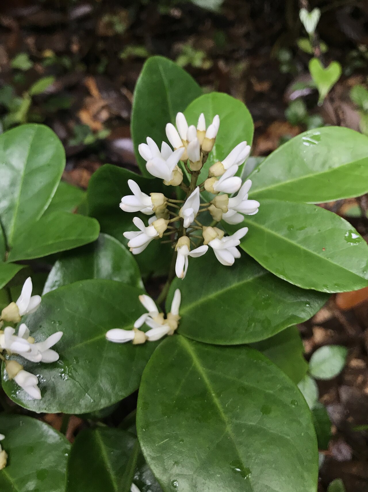 • 黄白色,聚伞状排列成总状花序