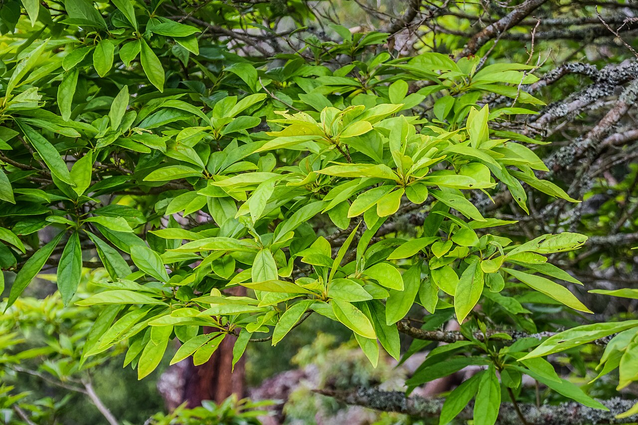 - 互生,革质,长椭圆形到披针形,边缘有锯齿