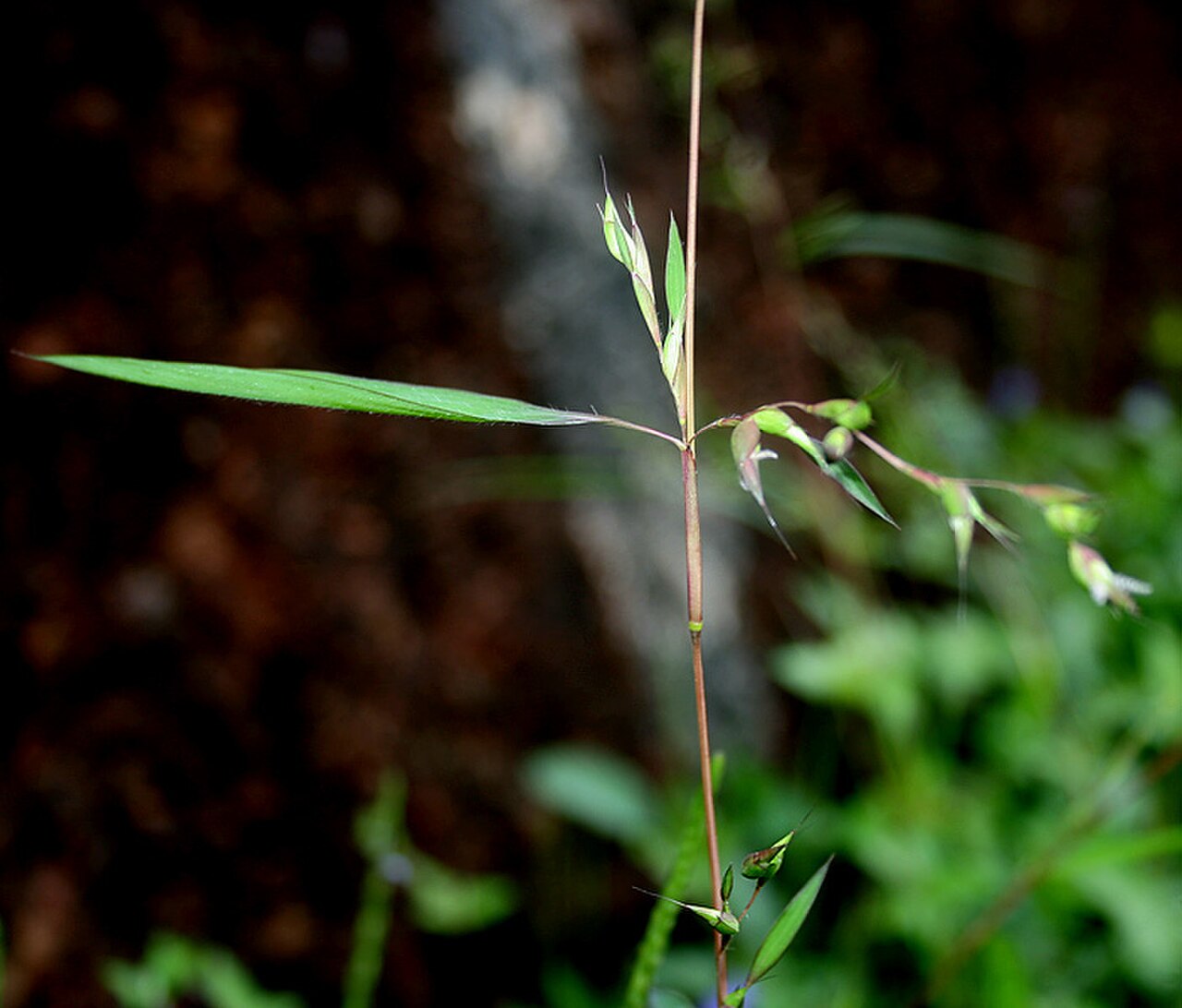 - 圆锥花序开展,小穗密集排列于分枝之一侧,每小穗含3-5朵小花