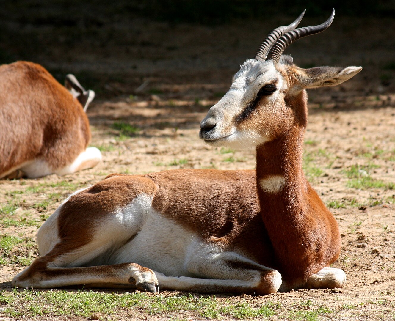 - 雄性和雌性都长有短而粗的角,但雄性的更大更弯曲