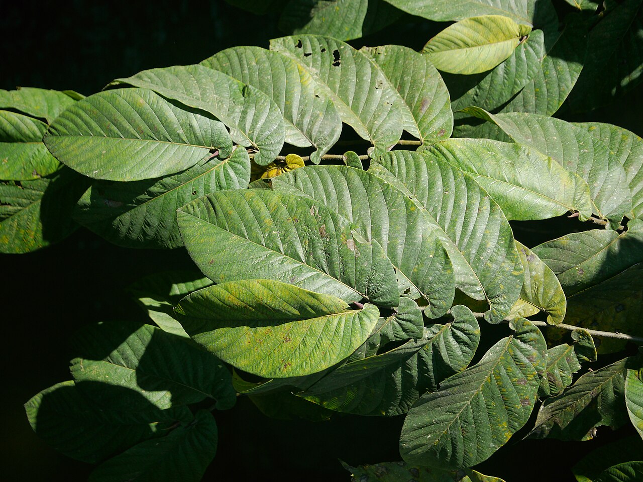 - 叶片革质,椭圆形或卵状披针形,边缘平滑或有微锯齿