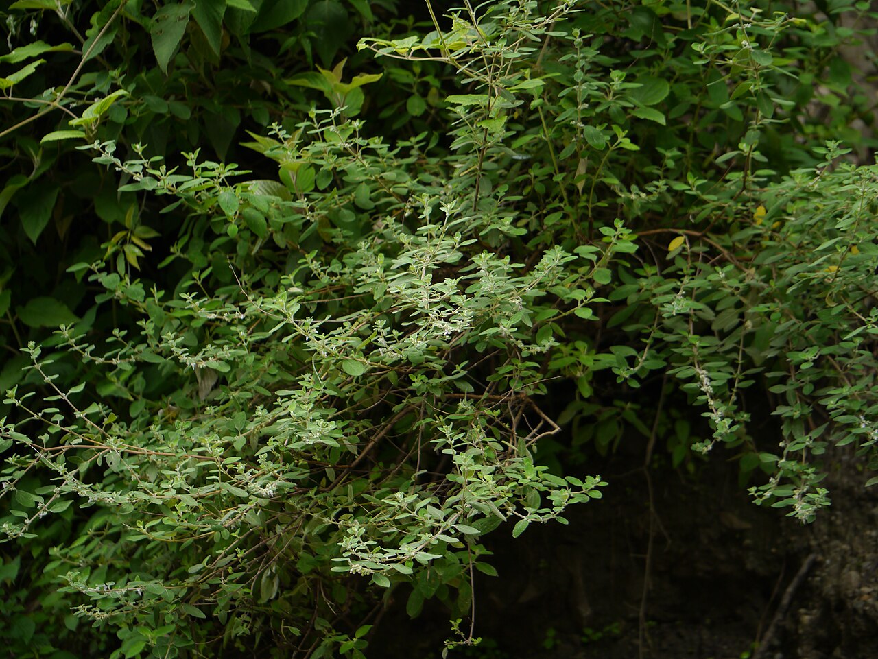 - 对生,叶片呈长椭圆形至披针形,边缘有锯齿,表面绿色,背面淡绿色,叶面带有细小的皱纹