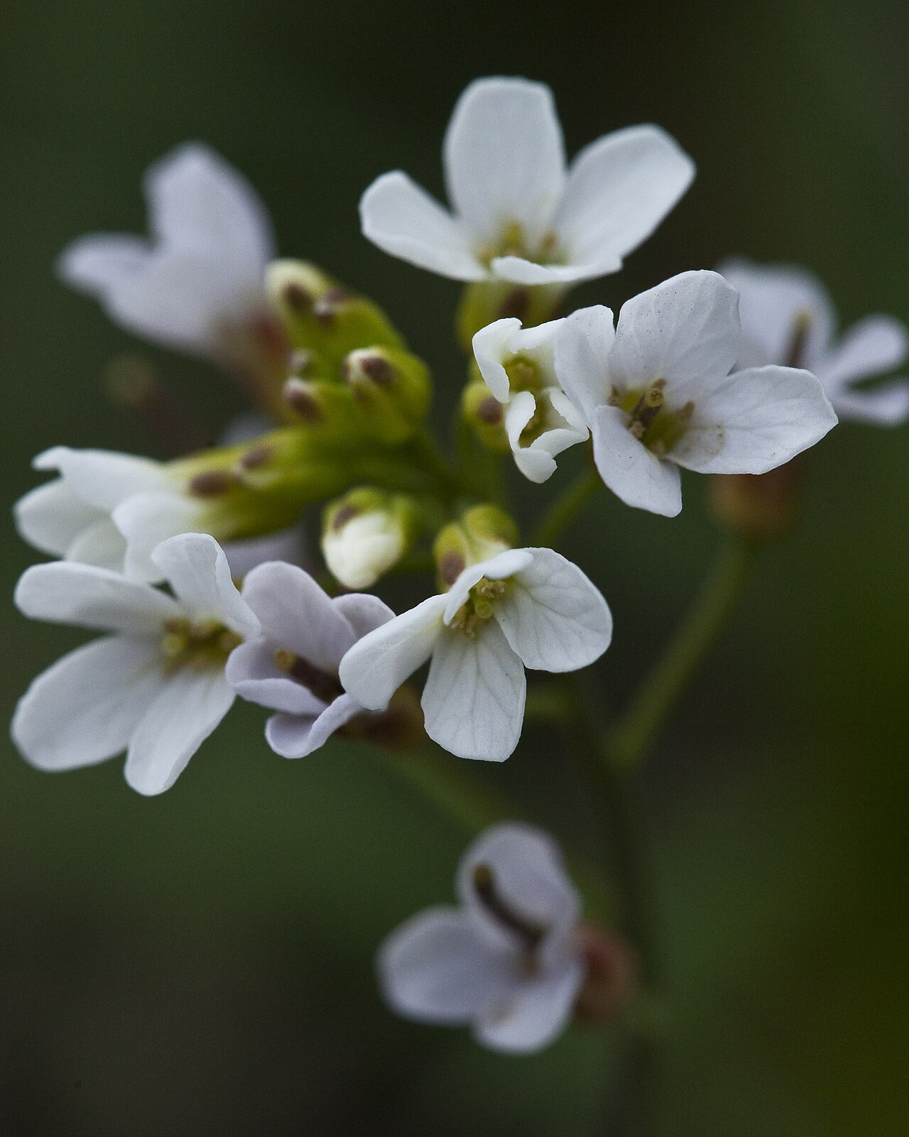 • 白色小花,花瓣四片,呈十字形排列