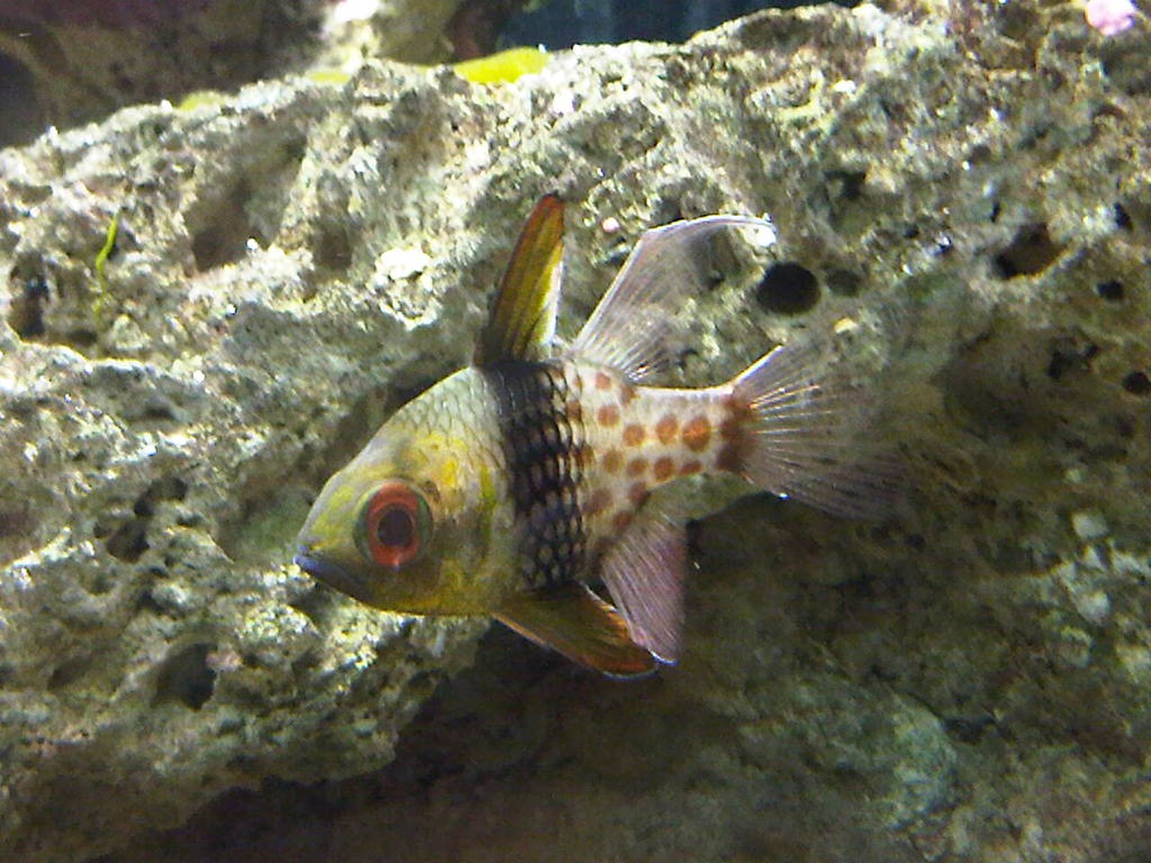 - 丝鳍圆天竺鲷是典型的夜行性鱼类,拥有良好的夜视能力